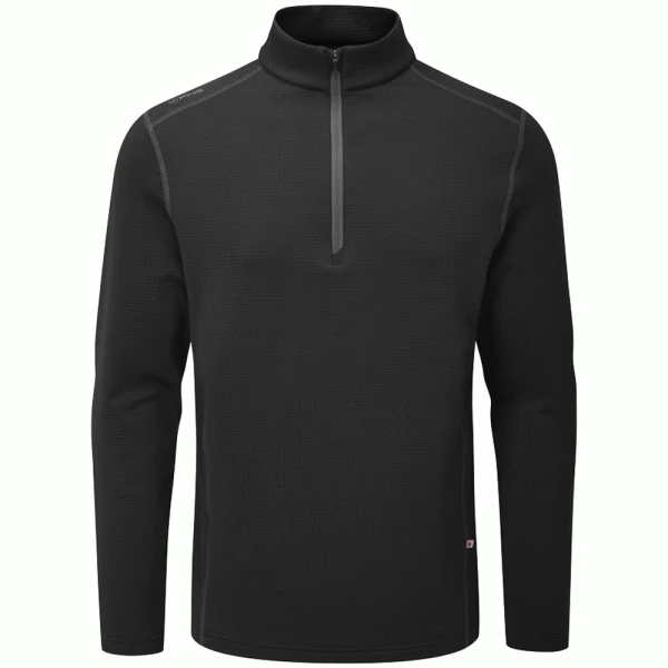 The Ping Edwin is a 1/2 zip sweater perfect for those early morning rounds or spring days. Made from 88% Polyester, 12% Spandex, this sweater features Ping’s Sensorwarm technology, which will maintain heat, moisture and thermal properties within your sweater.